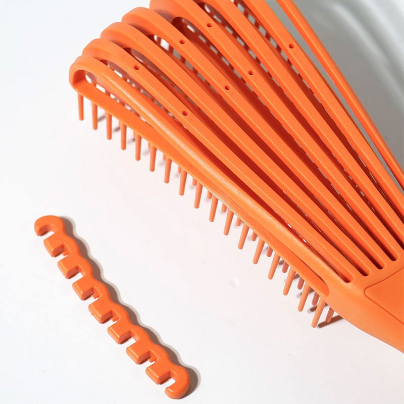 The Flexible Detangling Brush is the perfect solution for everyday detangling. Designed for all hair types—whether fine, thick, curly, or coily—this brush features flexible, wide-set bristles that glide effortlessly through knots and tangles, minimizing hair breakage and damage. With its unique adjustable bristle system, you can customize the tension to suit your hair’s needs, ensuring optimal results with each use. The ergonomic non-slip handle provides maximum comfort and control, while the vented design speeds up drying time when used on wet hair. Available in vibrant shades like bold Blue, playful Purple, and bright Orange, this brush is as stylish as it is practical.