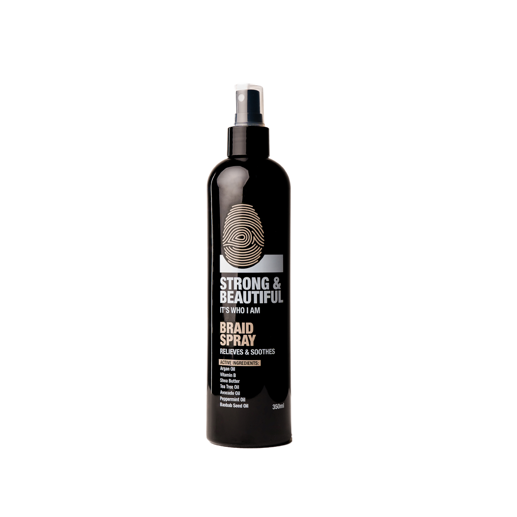 Experience ultimate relief and hydration with our Braid Spray 350ml, designed to soothe itchy scalps and enhance the health and appearance of your braids. This specially formulated spray not only alleviates discomfort but also provides essential moisture to prevent water loss from your hair, keeping it soft, manageable, and beautifully textured. Enriched with a powerful blend of natural ingredients like Shea Butter Extract, Tea Tree Leaf Oil, Peppermint Oil, Avocado Oil, Argan Oil, Baobab Seed Oil, and Panthenol, this spray improves hair elasticity and promotes faster skin repair. Ideal for all hair types, our Braid Spray is the perfect addition to your hair care routine for maintaining healthy, hydrated, and comfortable braids.