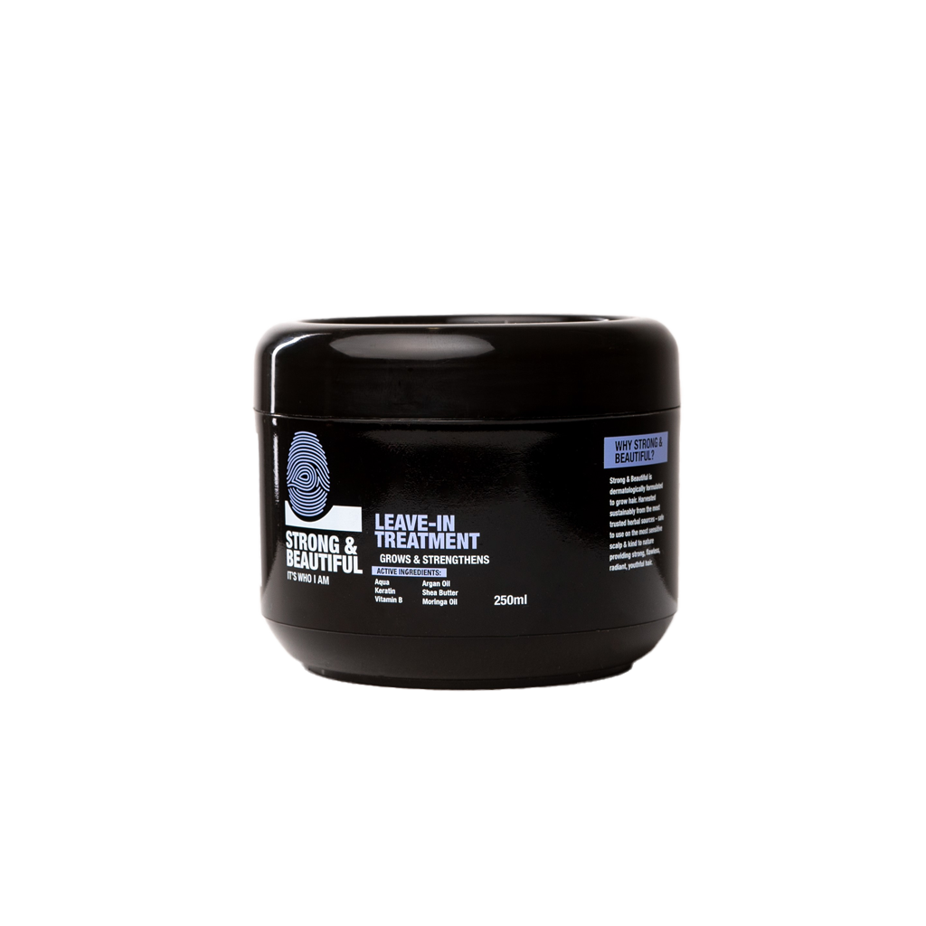 Revitalize your hair with Strong & Beautiful Leave-In Treatment, a powerful formula designed to immediately stop breakage and promote longer, stronger hair. This 250ml treatment helps restore natural shine and luster by realigning hair cuticles and mending split ends. Infused with nourishing ingredients like Coconut Oil, Keratin, Panthenol, Lactic Acid, Shea Butter, Argan Oil, and Moringa Seed Oil, this leave-in treatment provides deep hydration and essential nutrients, ensuring your hair remains healthy, soft, and beautifully manageable. Perfect for all hair types, it’s your essential solution for maintaining strong, vibrant hair every day.