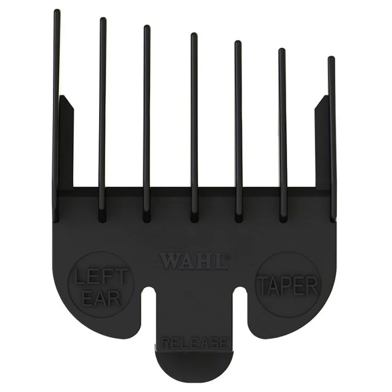 The Wahl Left Ear Tapered Clipper Comb is an essential attachment for barbers and stylists aiming to deliver flawless cuts around the left ear. This specialized black attachment comb extends the cutting length of your taper clipper, allowing for smooth, even tapering along the left earline. Its sturdy design ensures a secure fit on all Wahl taper clippers, making it an indispensable tool for achieving clean and precise results.